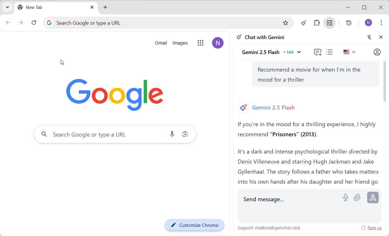 Launch Gemini AI with a single click inside Chrome.